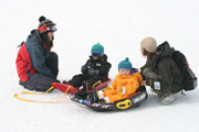 さて今日、スカイ獅子吼では「吼動」と題してプロボーダーを招いてのジャムセッションが有り、天気もそこそこ良くて多くの人でした。家族連れも多く、こんな光景もあちこちで見られました。今週は白峰の「雪だるまウィーク」ですネ。